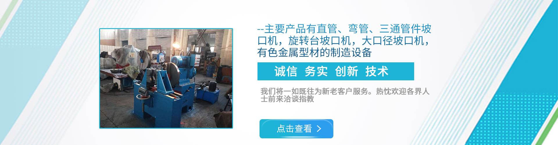 公司現(xiàn)下轄兩個分廠,一分廠主營電動管道坡口機和焊接設備,適用于造船、電力工程安裝、石油、化工、鍋爐廠、冶金以及鋼鐵行業(yè); 二分廠主營雙頭坡口機,600mm直管坡口機和金屬型材擠壓生產線,適用于銅、鋁、鎂、鉛、鋅等有色金屬及其合金的加工。